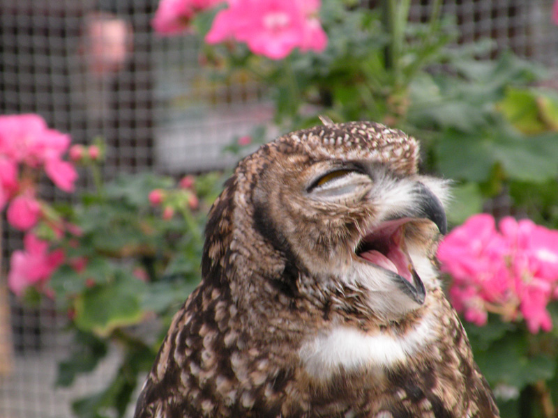 フクロウも「あくび」をするらしい。